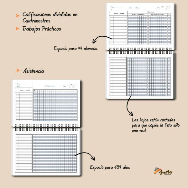 Agenda Docente 2 Cursos - Tapa dura A5 - Diseño 3