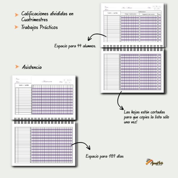 Agenda Docente 6 Cursos - Tapa dura A5 - Diseño 10