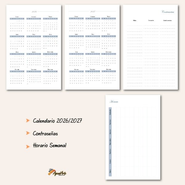 • Se puede elegir con o sin Vista mensual de Enero a Diciembre