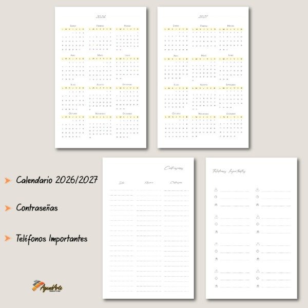 Agenda 2026 - Tapa Dura A5 - Vista 2 Días por hoja - Amarillo