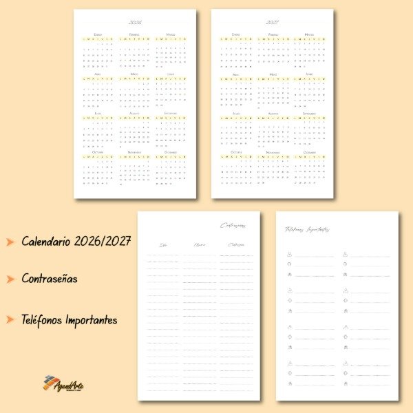 Agenda 2026 - Tapa Dura A5 - Vista Diaria - Amarillo