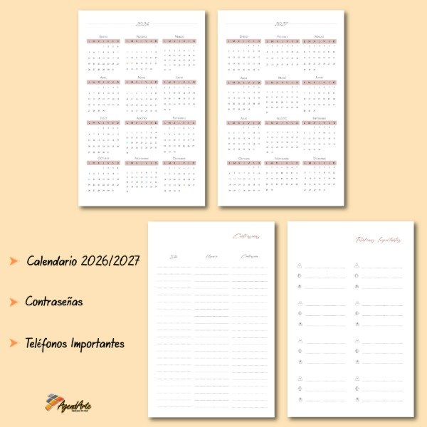 Agenda 2026 - Tapa Dura A5 - Vista Diaria - Rosa