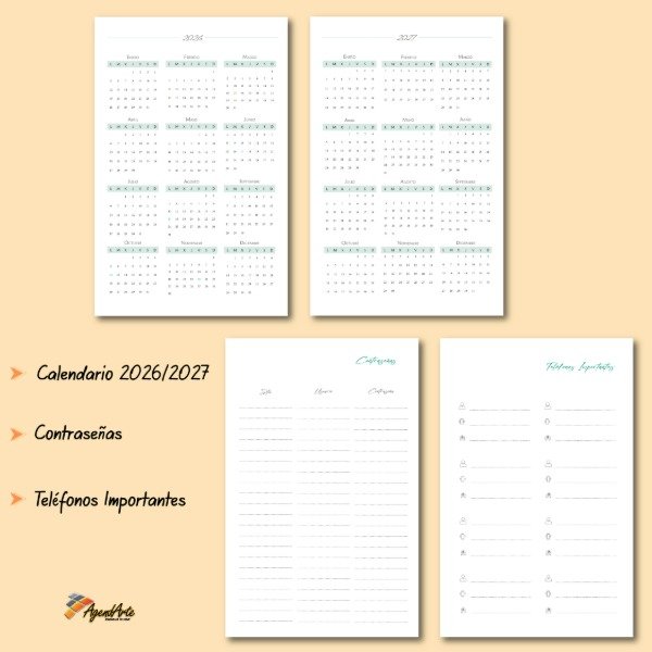 Agenda 2026 - Tapa dura A5 - Vista Diaria - Verde